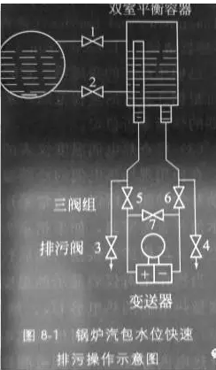 鍋爐汽包水位變送器排污后,要有足夠的泠凝水后才能投運(yùn),通常要用一個多小時,除采取人工加水的方法外,還可采取用汽包的水來向雙室平衡容器內(nèi)加水,就可以即時排污即時投運(yùn)變送器。